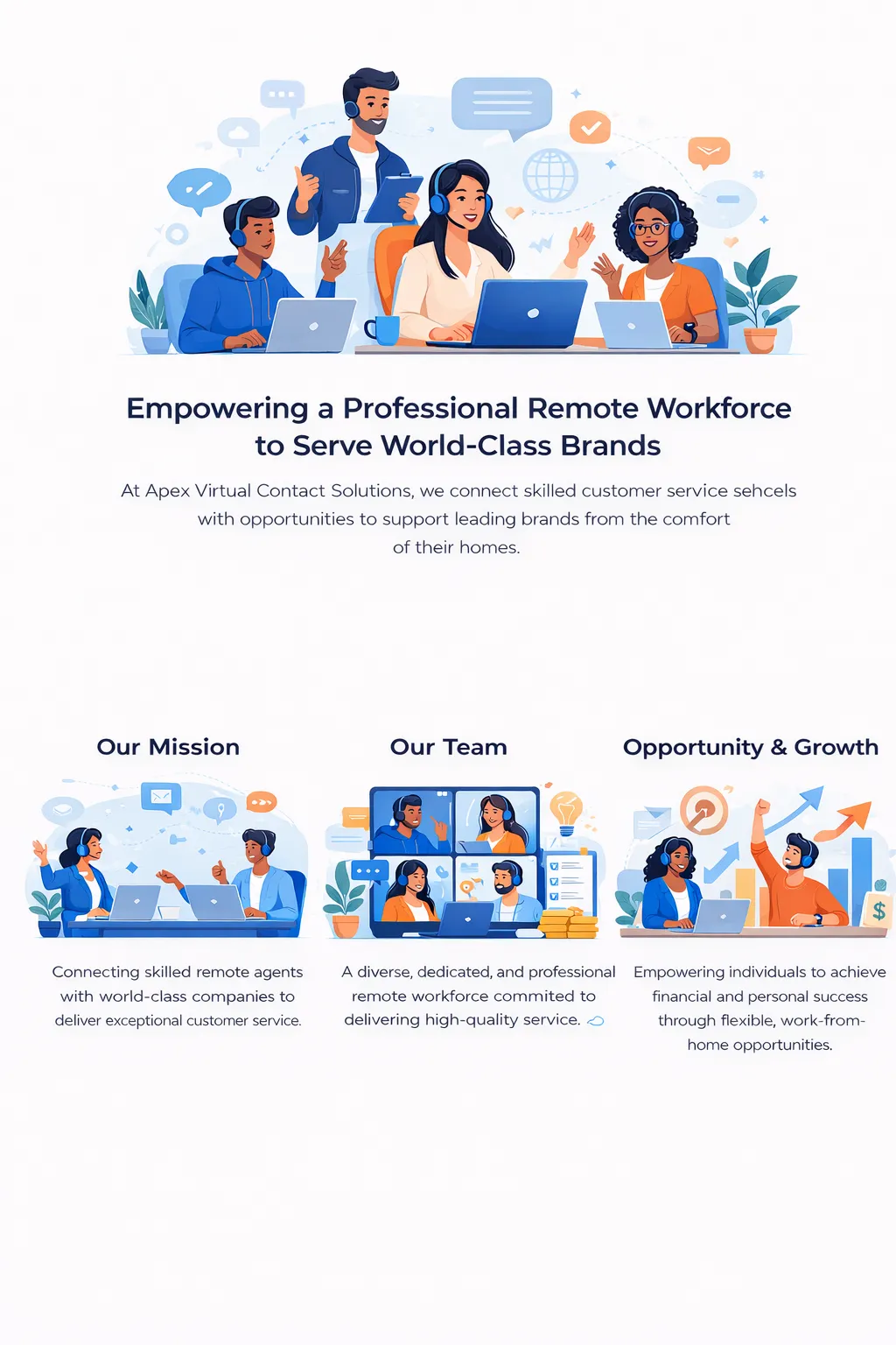 Apex Virtual Contact Solutions connects talented remote professionals with global brands seeking exceptional customer service support.